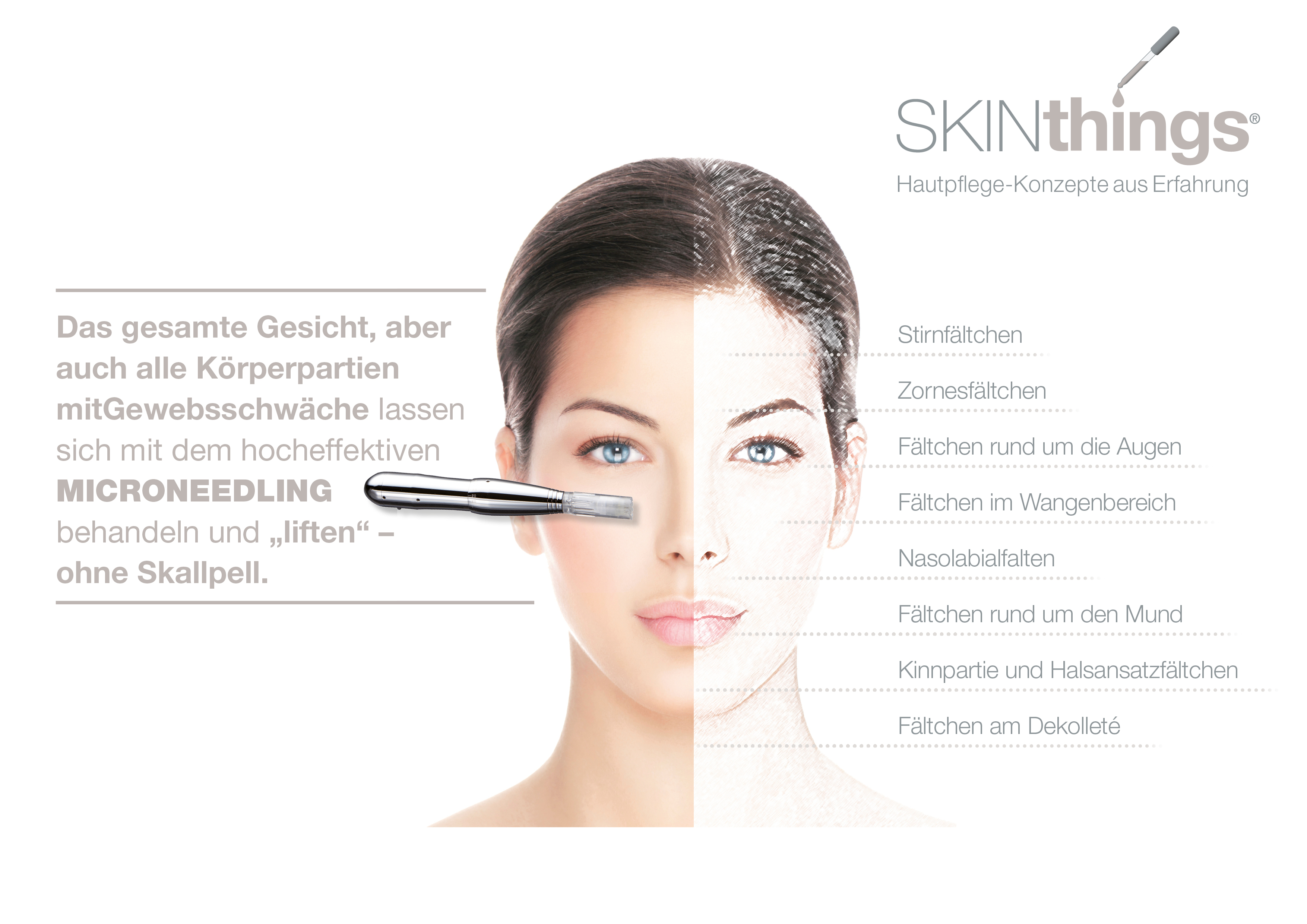 Das MICRONEEDLING ist eine minimalinvasive Methode der Behandlung, die mit einem elektronisch gesteuertem Handgerät ausgeführt wird, dessen Behandlungskopf mit zahlreichen microfeinen Nadeln versehen ist, die bis zu 1000 Mal pro Minute ausfahren. Es werden kleinste Verletzungen in der Hautoberfläche verursacht – die Haut wird perforiert. Unser Organismus wird die Defekte reparieren wollen und zwar materialsparend. So findet unmittelbar nach der Behandlung eine Straffung statt, um den zu reparierenden Defekt zu verkleinern. Ein Reparaturmechanismus setzt sich fort!